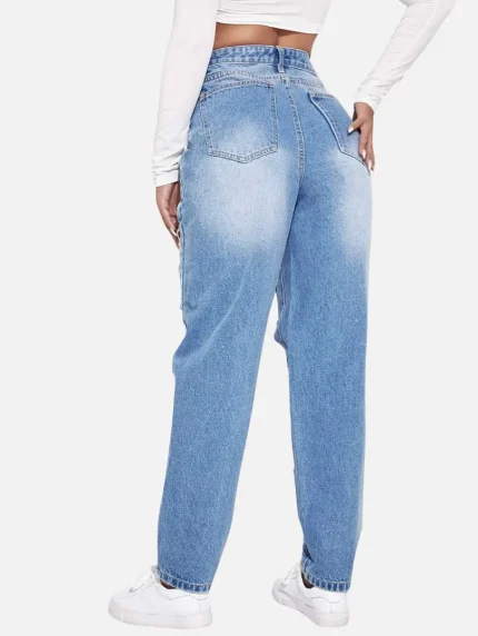Butterfly Print Ripped Straight Leg Jeans